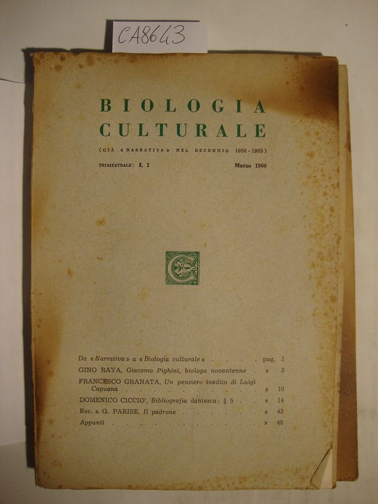 Biologia culturale (già Narrativa del Decennio) (n. 1, 2 e 4 del 1966)