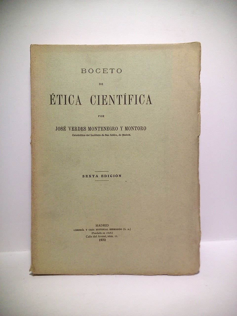 6ª Ed.- Madrid: Libr. y Casa Ed. Hernando, 1932.- 255 p.; 4º menor (22 x 16,3 cm); Cartulina Ed.* FILOSOFÍA E HISTORIA DE LA CULTURA