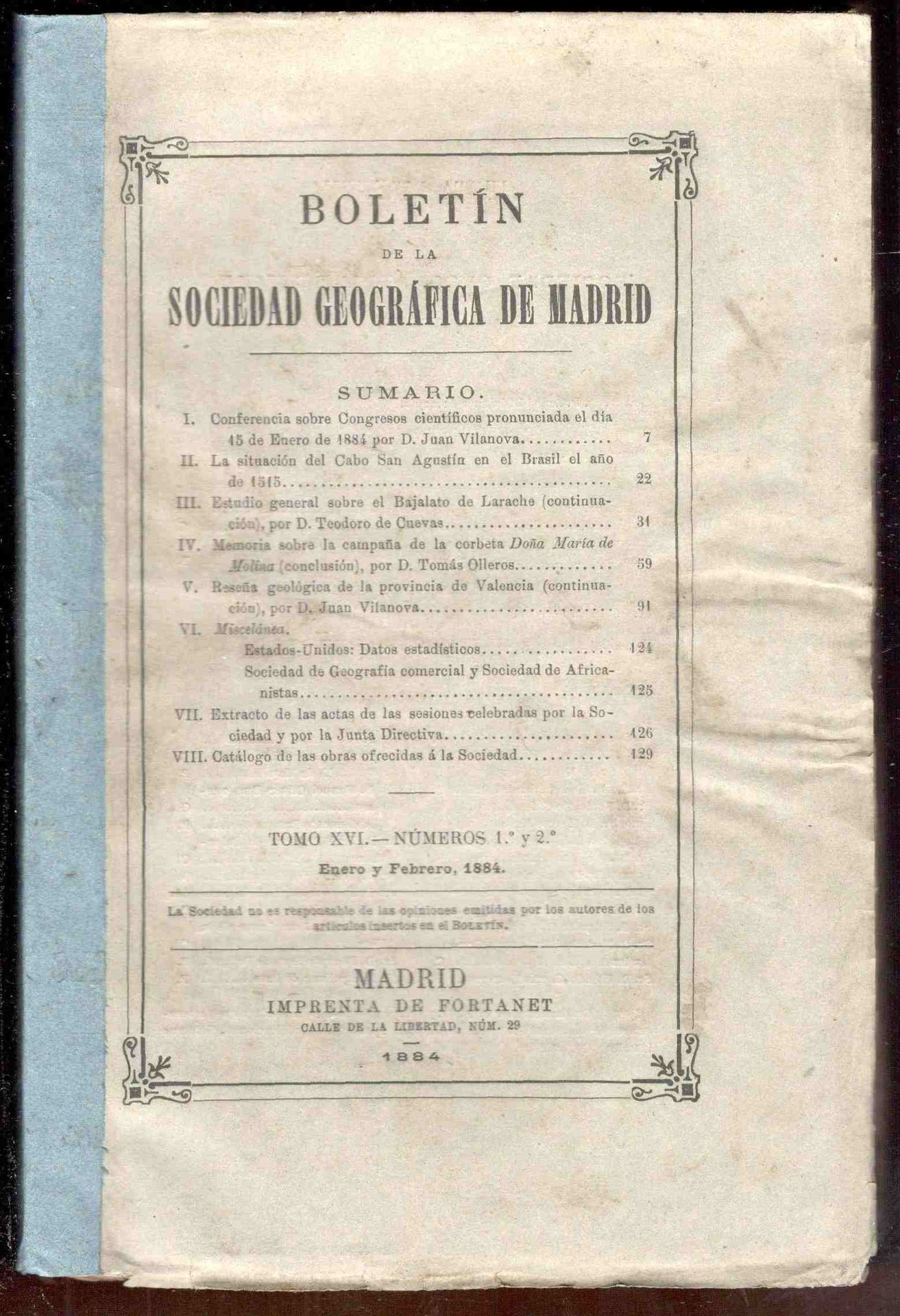 Boletín de la Real Sociedad Geográfica de Madrid. Tomo XVI. Primer semestre de 1884