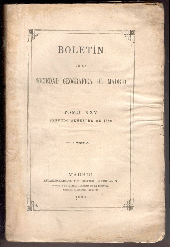 Boletín de la Real Sociedad Geográfica de Madrid. Tomo XXV. Segundo semestre de 1888