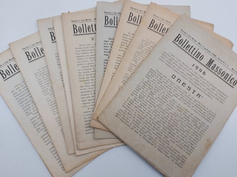 Bollettino Massonico riservato ai Liberi Muratori, Bari. Insieme di 11 numeri 1946-1948