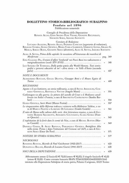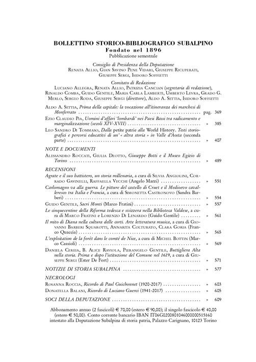 Bollettino storico-bibliografico subalpino. Anno CXVII 2019 - Secondo semestre (Giugno-Dicembre 2019)