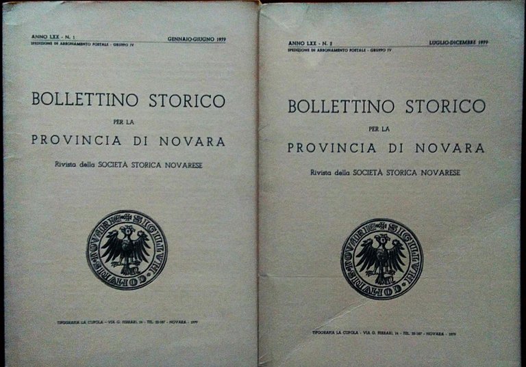Bollettino storico per la provincia di Novara - Rivista della società storica novarese - Anno LXX, N. 1 e 2, 1979. Annata completa.