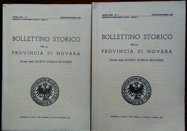 Bollettino storico per la provincia di Novara - Rivista della società storica novarese. Anno LXXI N. 1 e 2, 1980. Annata completa.