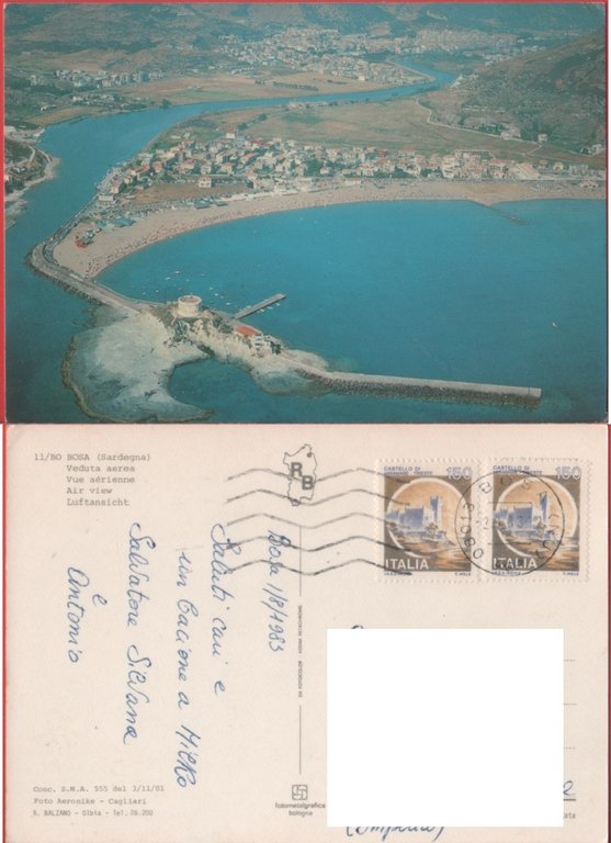 Bosa (NU). Veduta aerea. Viaggiata 1983