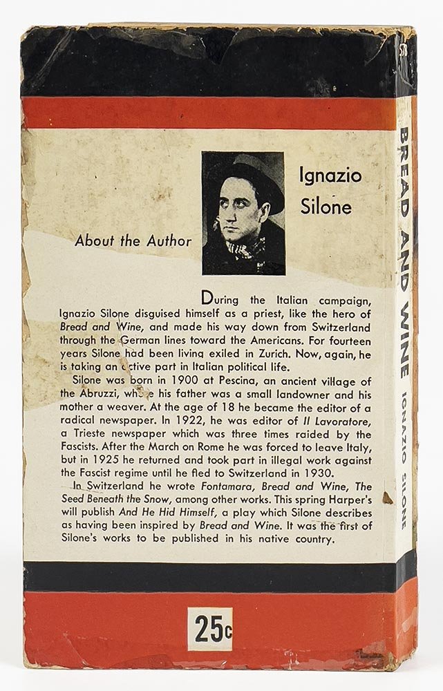 LIBROPrima edizione «Penguin».Esemplare molto vissuto, come tipico di queste edizioni tascabili popolari.L’edizione del libro nella celebre collana dei tascabili economici americani conferma il grande successo dell’opera, divenuta «Book of the Month» subito dopo la prima apparizione con l’editore Harper & Brothers. Traduzione di Gwenda David e Erich Mosbacher, coppia di traduttori che strinsero un rapporto di amicizia con Ignazio Silone.D’Eramo, Ignazio Silone (Roma 2014), p. 144