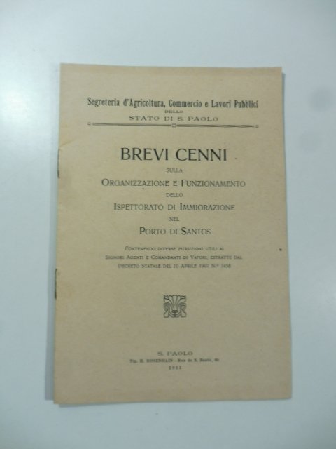 Brevi cenni sulla organizzazione e funzionamento dello Ispettorato di immigrazione nel porto di Santos