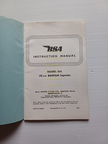 BSA Bantam Supreme 175 D10 1966 manuale uso manutenzione originale owners manual
