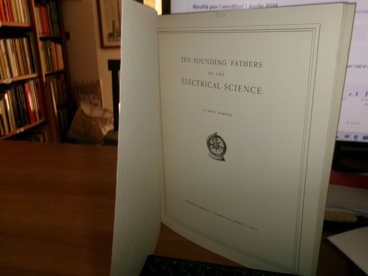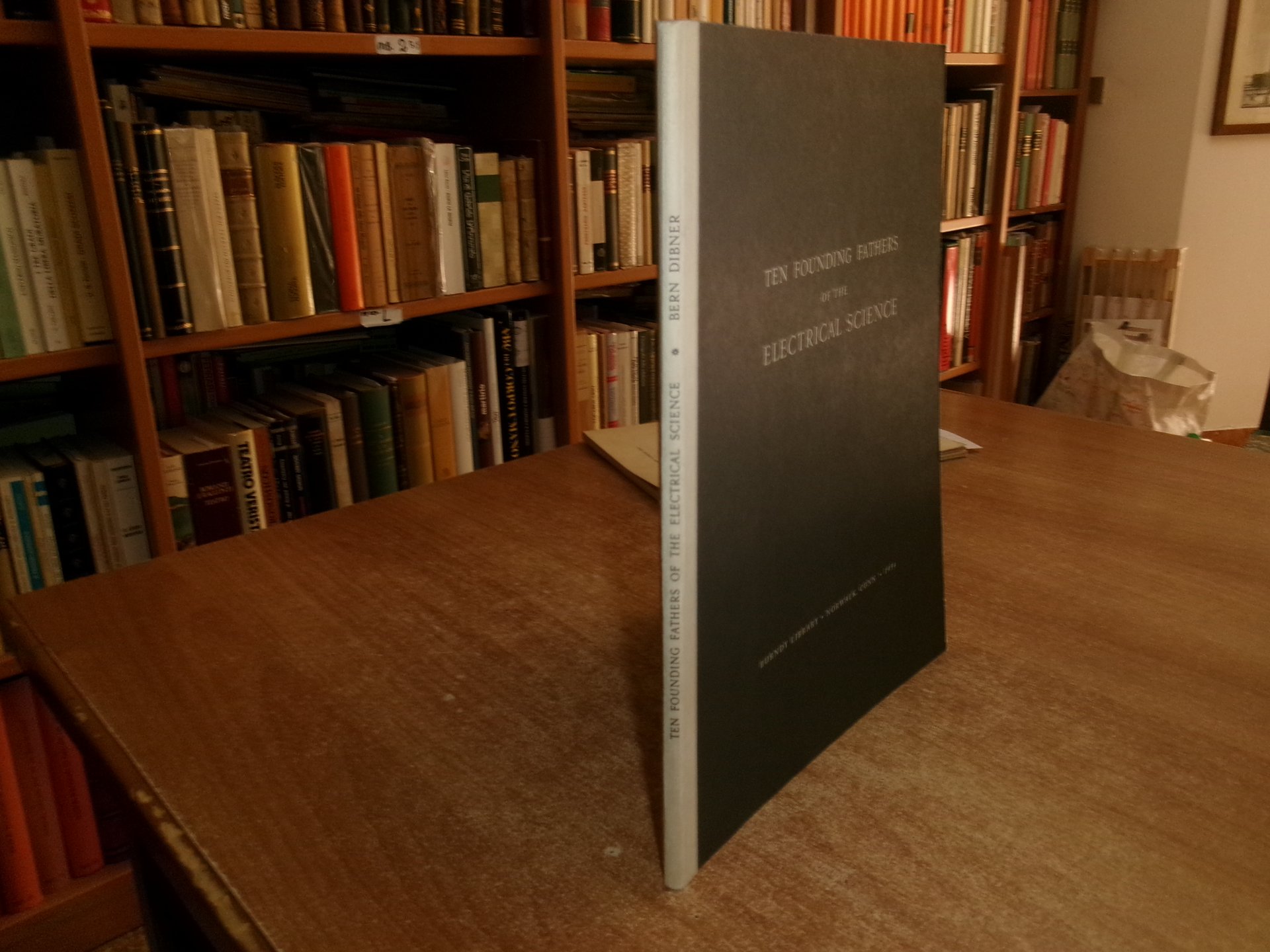 By BERN DIBNER. Ten Founding Fathers of the Electrical Science. Norwalk, Conn., Burndy Library, 1954. In-8° grande, cart. edit. 48 pp. con ritratti e illustrazioni n.t. Ottimo stato. Neg. mob. 3