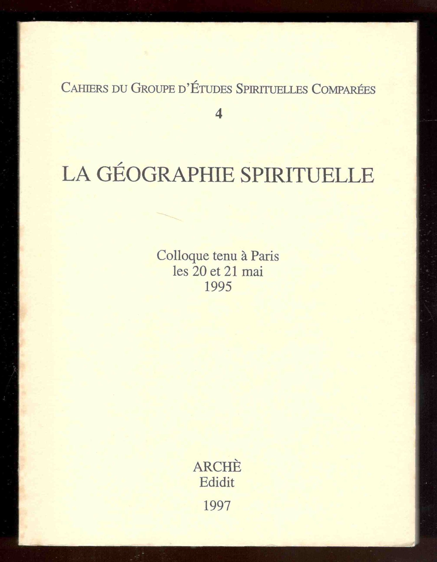 Cahiers du Groupe d'Études Spirituelles Comparées. 4. La Géographie Spirituelle. Colloque tenue à Paris les 20 et 21 mai 1995