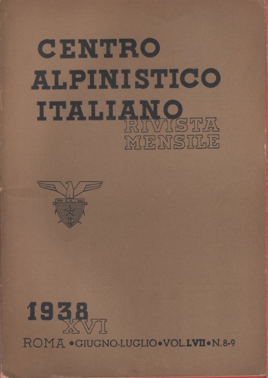 CAI Centro Alpinistico Italiano. Rivista mensile. vol. LVII. 1938 n. 8/9