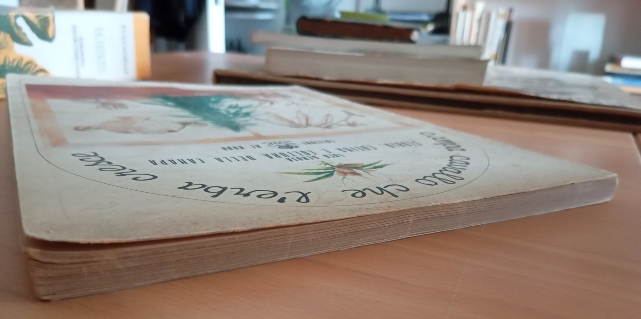 Copertina con segni di usura, come da foto, tagli scuriti con fioriture, legatura debole in un punto ma non compromessa, come da foto