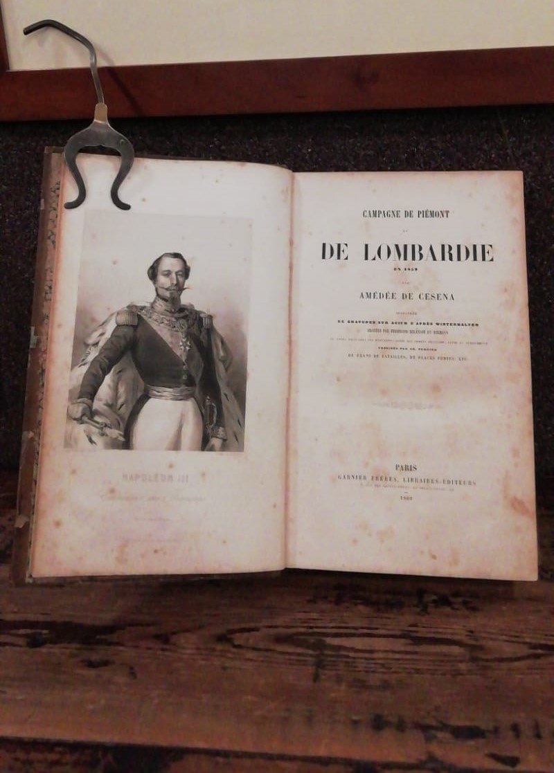 2 parti in un volume in-4° (275x180mm), pp. XI, 312; 328; legatura del tempo in mezza pelle marrone con titolo e filetti in oro su dorso. Complessivamente, 27 tavole incise su acciaio f.t.: 3 ritratti (Napoleone III, l'Imperatrice Eugenia e Vittorio Emanuele II), 4 cartine topografiche ripiegate a colori (battaglie di Venezia, Magenta, Solferino, Verona), 5 vedute (battaglia di Magenta, Duomo di Milano, Solferino, Desenzano, ritorno dell'esercito italiano) e 15 tavole finemente acquerellate, raffiguranti i vari corpi militari dell'esercito italiano e di quello austriaco, il tutto inciso da Willmann e da Ferdinand Delannoy e disegnato dal grande ritrattista Franz Xaver Winterhalter. Qualche minima fioritura e gora marginale. Prima edizione di questo importante volume, contemporaneo agli eventi narrati, relativo alla campagna dell'armata francese nell'Italia settentrionale nel 1859. Amedeo Gayet de Cesena (Sestri Levante, 1810-post 1880), giornalista e pubblicista, fu redattore principale del 'Constitutionnel' e del 'Figaro', fondatore del 'Courier de Dimanche'; egli mutò il proprio cognome da quello del padre francese, Gayet, a quello della madre, una Cesena di Sestri Levante. Brunet, Table, 8769. Graesse, VIII, p. 170. De Gubernatis, Dict. Internationale des Ecrivains du Jour, I, pp. 573-74.