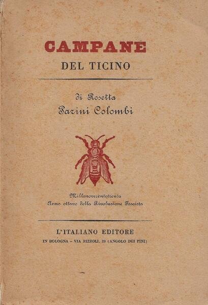 In-8°, pp. 143, cm 19,5. Brossura editoriale con sovracoperta, protetta da velina. Prima edizione La Parini Colombi (1884-1943), scrittrice ticinese, pubblicò diverse narrazioni ispirate al Canton Ticino e fu infermiera volontaria durante la guerra italo-greca, ricevendo sul campo la Croce di Guerra al Valor Militare (1941).