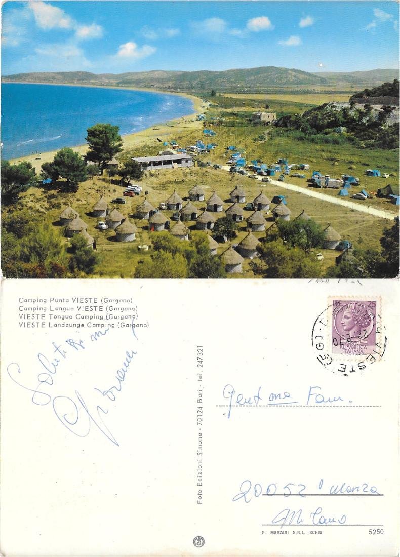 Camping Punta Vieste (Gargano). Viaggiata 1970