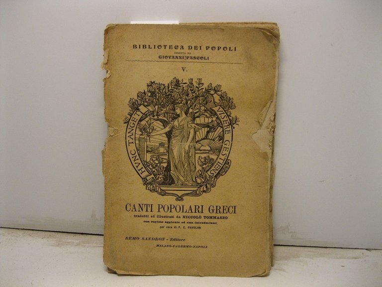 Canti popolari greci tradotti ed illustrati da Niccolo' Tommaseo con copiose aggiunte ed una introduzione per cura di P. E. Pavolini