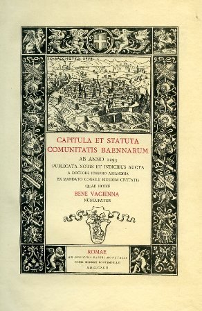 Capitula et Statuta Comunitatis Baennarum ab anno 1293 publicata notis et indicibus aucta a doctore Iosepho Assandria ex mandato consilii eiusdem civitatis quae hodie Bene Vagienna noncupatur