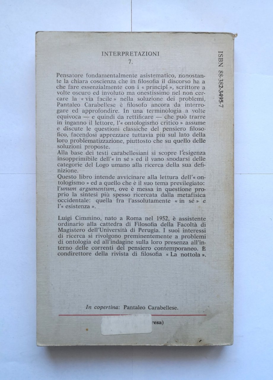 CARABELLESE. IL PROBLEMA DELL'ESISTENZA DI DIO di Luigi Cimmino.Edizioni Studium, 1983.173 pagine. Copertina editoriale in brossura. Stato di conservazione: molto buono (pagine normalmente ingiallite) Libro usato filosofia teologia religione
