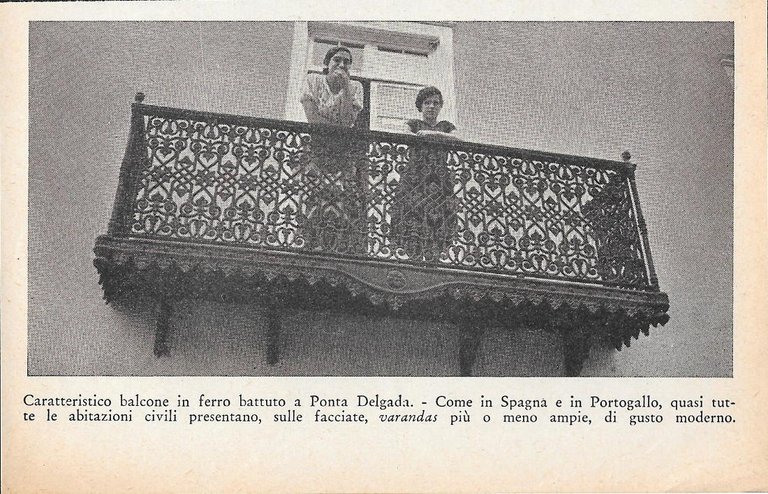Caratteristico balcone in ferro battuto a Ponta Delgada (Azzorre). Stampa 1934