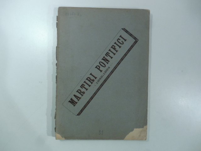 In 8 (cm 15 x 21,5), pp. 157 + (3). Brossura editoriale con dorso rifatto e lievi mancanze ai piatti. Biografie di caduti nei moti risorgimentali nello Stato pontificio. Fra questi: Federico Comandini; Augusto Bertoni; Luigi Grandoni; Luigi Anderlini; Adamo Antonelli; i fratelli Massarigi; ecc.