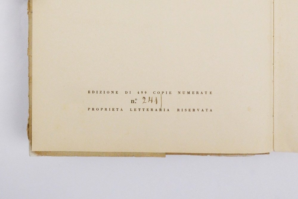 Edizione: edizione originale, tiratura numerata con copertina rigida.