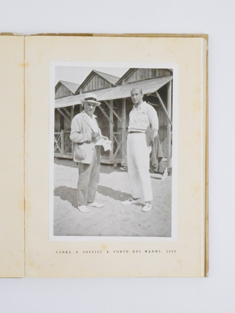 - pp. 157 [1]: comprese nella numerazione le centoquattro pagine in carta patinata con tavole in bianco e nero a piena pagina (due tavole a colori); una fotografia di Carrà e Soffici applicata a p. [47].