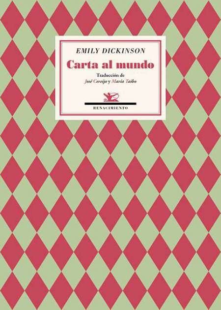 Carta al mundo (Antología). Traducción de José Cereijo y María Taibo. Emily Dickinson (1830-1886) es sobradamente conocida de los lectores españoles. Prácticamente inédita en vida (como recordó Borges, pensaba que «publicar no es parte esencial del destino de un escritor»), su poesía, tan inagotable como cotidiana, ha ido alcanzando poco a poco el reconocimiento que sin duda merece, como uno de los nombres mayores no solo de la poesía norteamericana, sino de la universal. Esta muestra se atiene a la primera edición (1890) de su obra, cuyas peculiaridades respeta, dando así una imagen de cómo fue leída en su tiempo esta poesía, que es de las que pueden leerse en cualquier tiempo.