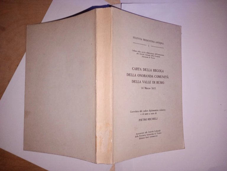 carta della regola della onaranda comunità della valle di Rumo 14 marzo 1611 - anastatica 1981