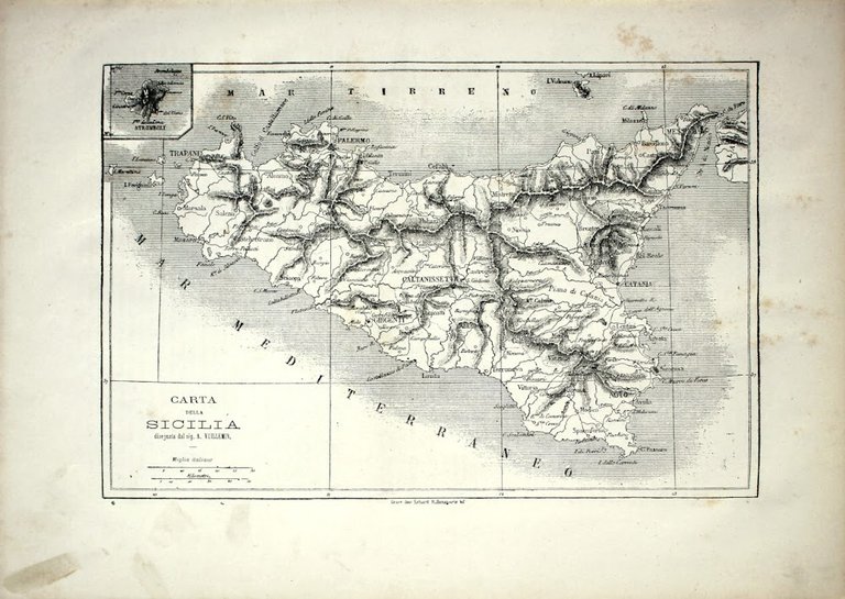 Carta della Sicilia/Tipi e costumi siciliani. Stampa 1864