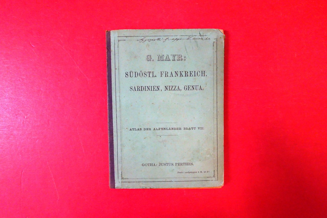 Carta Telata Mayr Atlas Alpenlander und Mittel-Italien Sardinien Nizza 1889