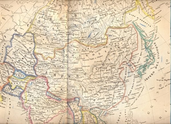 Carte geografiche su foglio di cm. 34 x 46 ca., disegnate da Naymiller ed incise da Allodi. Confini acquarellati all'epoca. Disponiamo: Quadro comparativo dei principali monti della Terra; Asia; Prospetto comparativo della lunghezza del corso dei principali fiumi. Alcune carte presentano, sul retro , timbro di appartenenza. CADAUNA EURO 70,00.