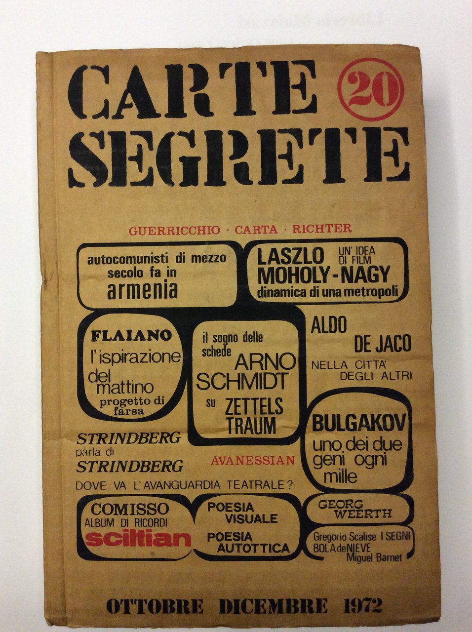 CARTE SEGRETE. - Rivista Trimestrale di Lettere ed Arti, Anno VI - Ottobre-Dicembre 1972, Numero 20.