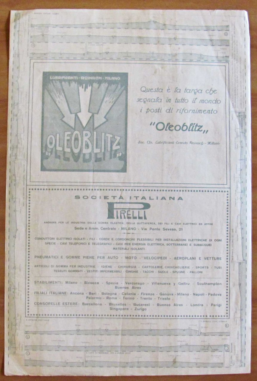 Atlante Stradale Touring Club Italiano. Brindisi-Lecce. Foglio 37. Scala 1: 300.000. Ufficio Cartografico del T.C.I. - Milano, 1924. Cartina di parte della Puglia. 30x45. Ottimo stato. , Ottimo (Fine)
