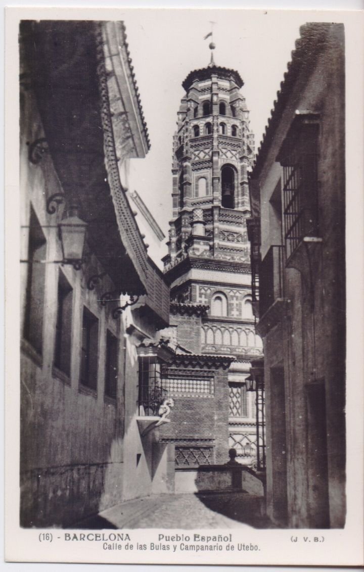 Cartolina - Barcelona. Calle de las Bulas y Campanario de Utebo