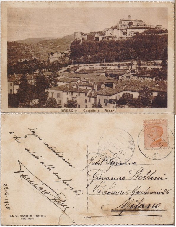 Cartolina - Brescia. Castello e i Ronchi. Viaggiata 1925