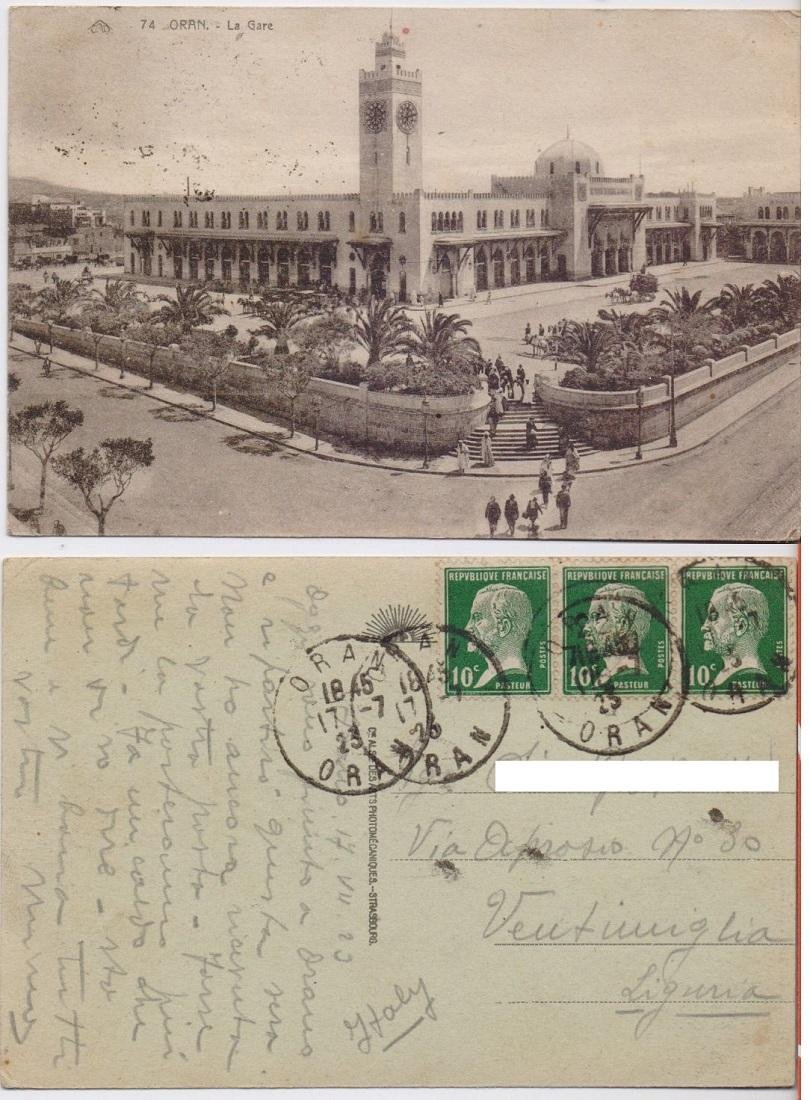 Cartolina - Oran. La gare. Viaggiata 1923, animata