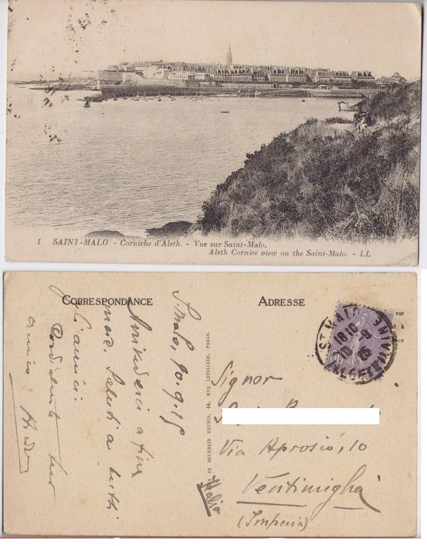 Cartolina - Saint Malo. Corniche d'Aleth. Vue sur Saint Malo. Viaggiata 1925