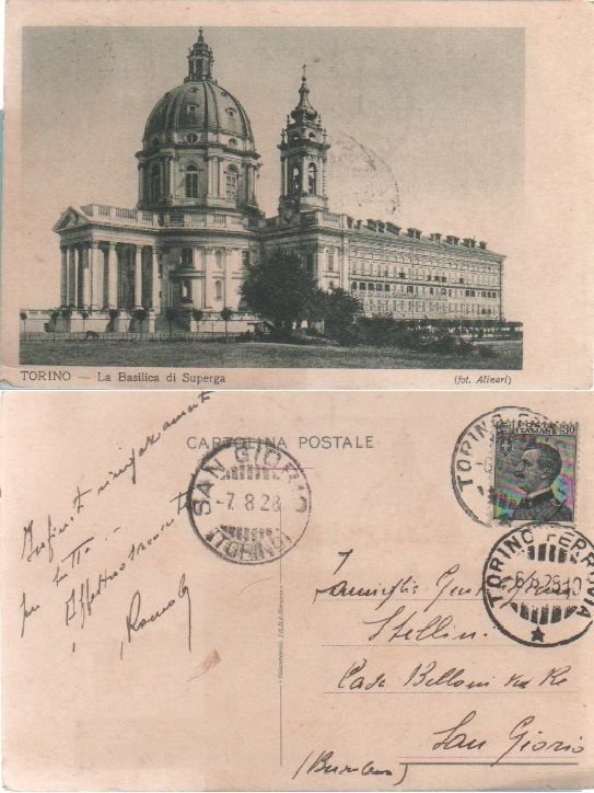 Cartolina - Torino. La Basilica di Superga (fot. Alinari). Viaggiata 1928
