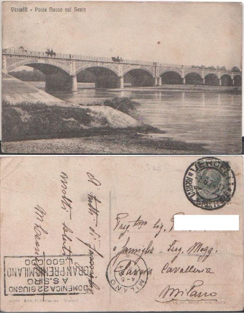 Cartolina - Vercelli. Nuovo ponte sul Sesia - Viaggiata 1924