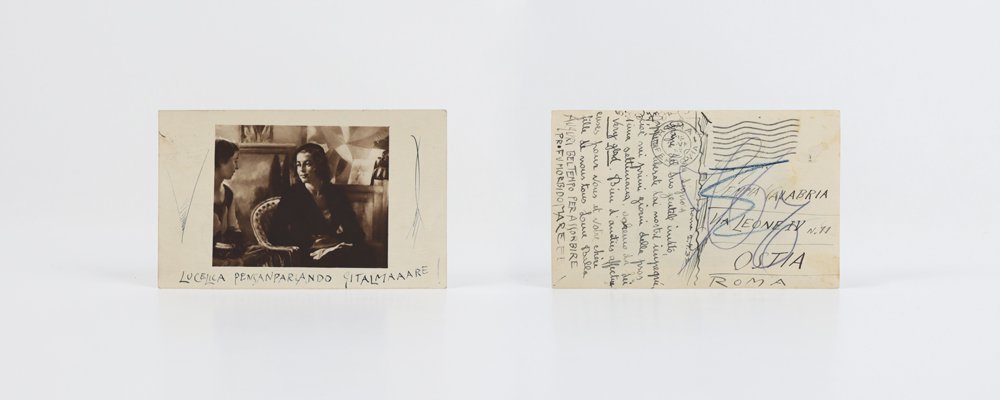 Cartolina autografa firmata, inviata a Emma Calabria: «LUCELICA PENSANPARLANDO GITALMAAARE»