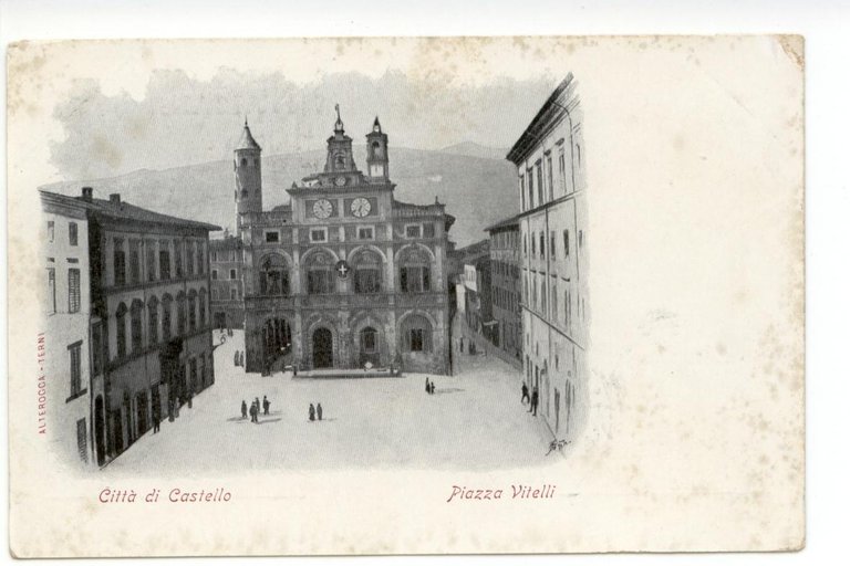 Cartolina originale, Città di Castello Piazza Vitelli S. d. (primi del Novecento); cm 14x9; non viaggiata. Condizioni di conservazione Cartolina ben conservata (vedi foto). CART.1090G