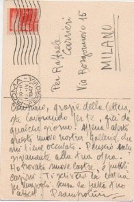 Cartolina postale viaggiata, autografa firmata. Datata 10 maggio 1947 (come da timbro postale).