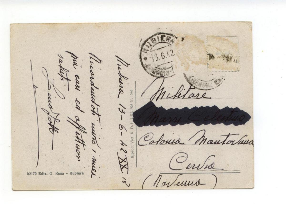 Cartolina originale, Rubiera Via Emilia 1942; cm 14x9; figurata e animata; viaggiata. Condizioni di conservazione Cartolina ben conservata. Un nome al retro è cancellato con il pennarello (vedi foto). CART.1111G