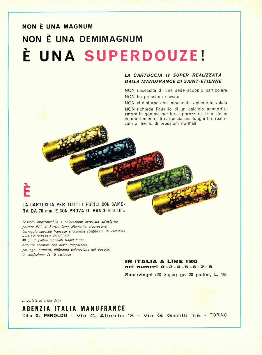 Cartucce Superdouze. Agenzia Italiana Manufrance. Advertising 1963