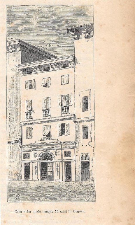 Casa nella quale nacque Mazzini in Genova. Stampa 1873
