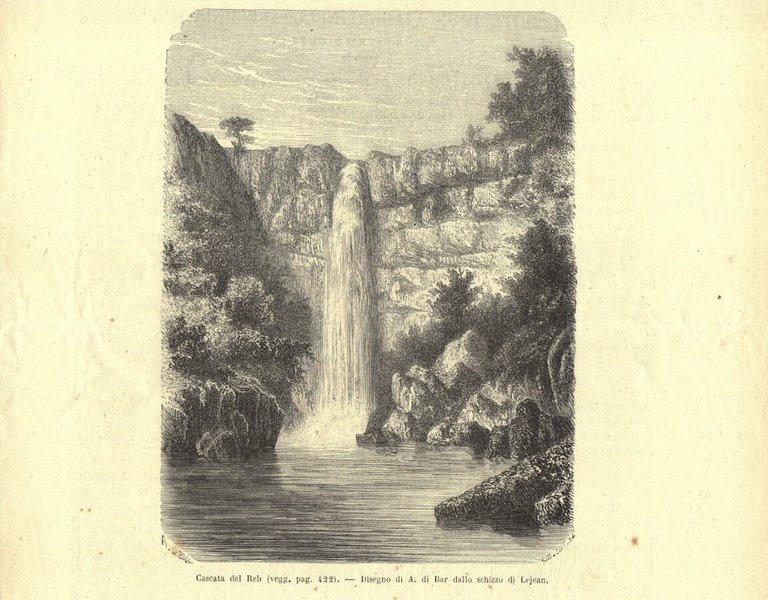 Cascata del Reb (Abissinia). Stampa 1863