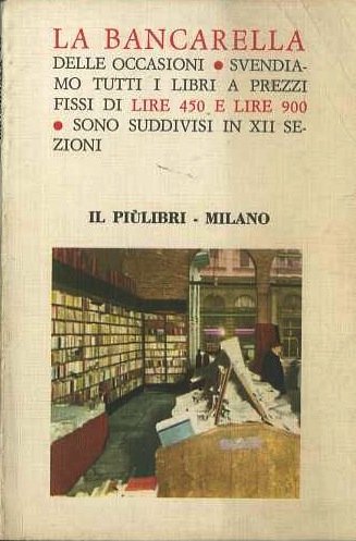 16 volumi di ca. 70 p., 15 cm, bross. Condizioni : USATO - Stato : Buono, ordinari segni d'uso e del tempo, alcuni dei primi allentati. Altre note : Possediamo i numeri: 4 (il regalalibri: 159 consigli per regalare libri spendendo bene), 5 (catalogo sistematico per l'acquisto di occasioni librarie), 6 (libri a prezzi democratici), 7 (catalogo sistematico per l'acquisto di occasioni librarie), 8 (catalogo sistematico per l'acquisto di occasioni librarie), 9 (cerchiamo di capirci leggendo e regalando libri), 10 (alla ricerca dei libri perduti: gli introvabili a prezzi speciali), 12 (Piùlibri come strumenti di lavoro: un catalogo che conviene consultare), 13 (cerchiamo di capirci leggendo e regalando libri), 14 (svendita di occasioni librarie), 15 (catalogo sistematico delle arti figurative), 16 (sotto le bandiere del marxismo: guida ad un catalogo per la formazione di una biblioteca organica ed economica sulla storia contemporanea e del movimento operaio con una lettera di Paolo Spriano - Tomo III: Dal crollo del nazifascismo ai giorni nostri - Vasto volume di 224 p.), 17 (ho selezionato per gli amici, nei depositi degli editori, alcune centinaia di rarità bibliografiche), 18 (la bancarella delle occasioni), 20 (sotto le bandiere del marxismo: guida ad un catalogo per la formazione di una biblioteca organica ed economica sulla storia contemporanea e del movimento operaio con una lettera di Enzo Santarelli - Tomo II: Dalla Rivoluzione industriale alla II guerra mondiale - Vasto volume di 330 p.), 21 (riesumazione di un editore estinto: F.lli Bocca: Torino, Roma, Milano, 1922-1958: 180 autori: 249 titoli: 28 sezioni: un catalogo riservato ai bibliofili).