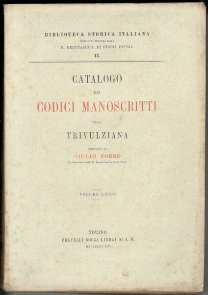 In 8°, pp. XV, (1), 532. Con una tavola doppia fuori testo. Brossura editoriale con titoli in rosso e nero e stemma sabaudo sul secondo piatto. Qualche segno del tempo ma copia in buono stato, interamente a fogli chiusi. Biblioteca storica italiana, II.