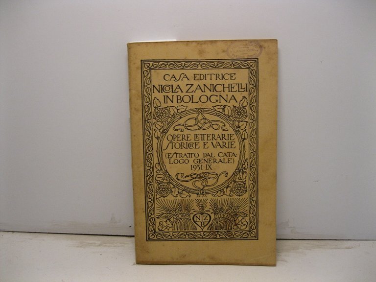 Catalogo Zanichelli. Opere letterarie storiche e varie (Estratto dal Catalogo generale 1931-IX)