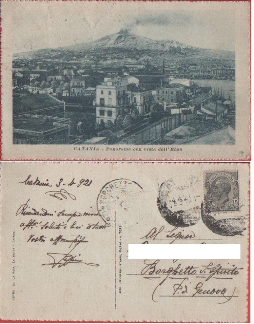 Catania. Panorama con vista dell'Etna - Viaggiata 1921